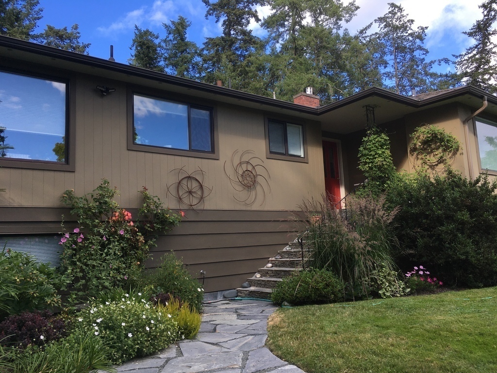 We live outside of Victoria, on Vancouver Island, on Canada's west coast. The house has two storeys and can comfortably accommodate four people. It has a full kitchen, all major appliances, a living room, music room, and study. There are two bedrooms and two full bathrooms. A stream runs the length of our property and we have a small orchard and lovely garden. Our house is in a semi-rural area and there are grocery stores, restaurants, and other shopping and services within one kilometre. Beaver Lake is a 15 minute walk from the house with a beach for swimming and extensive walking trails. The airport is a 25 minute drive north and the centre of Victoria is a 20 minute drive south from the house. We have a Honda Fit, 4 door hatchback, automatic transmission, with a hitch and bike rack.