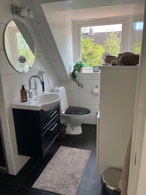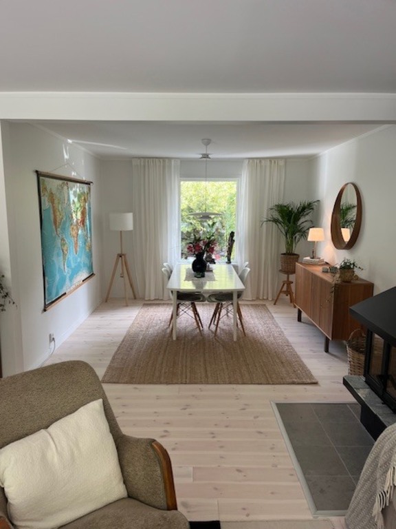 Our house (140 m2) is situated in a very quiet and friendly neighbourhood in the small town of Molnlycke (15 000 inhabitants). The house is built in the 80´s and has two floors. On the ground floor there is a huge living room with a fireplace, a kitchen, a bathroom and a washroom. On the 2nd floor there are three bedrooms, a TV room and a bathroom.