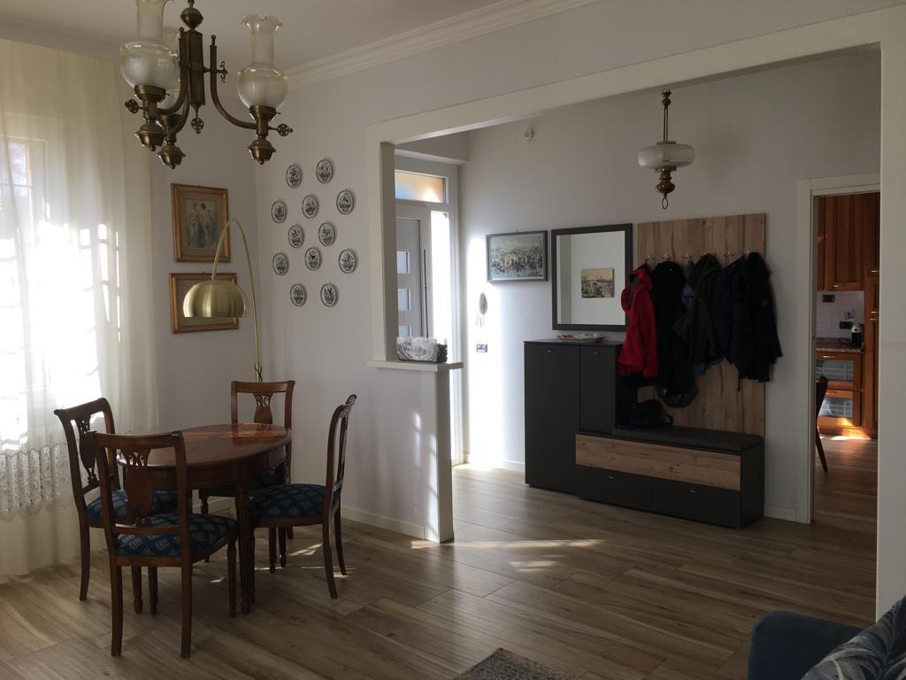 The house was recently renovated and includes two apartments. The ground-floor apartment is rented out, while the upper-floor apartment — available for exchange — features an entrance hall, a bright living room, a spacious eat-in kitchen, a bathroom, and two comfortable bedrooms. The main bedroom has a double bed, while the second has a French double bed, with the option to add a single bed if needed. The apartment is equipped with air conditioning.