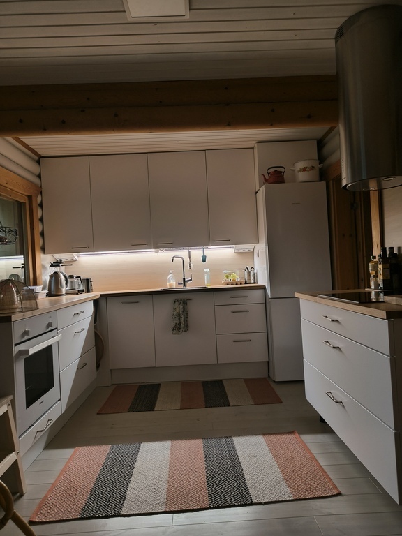 If you enjoy of nature and peace, you will find it from our summer house in Hirvensalmi. The log house is build in 1970's, but we have renovated sauna, bathroom and kitchen recently. The house is situated in a small island, Virvonsaari, where you have to row 150 meters by boat. There are two bedrooms and livinroom, in our house. There is a few more sleeping places in the unheated storehouse in summer time.