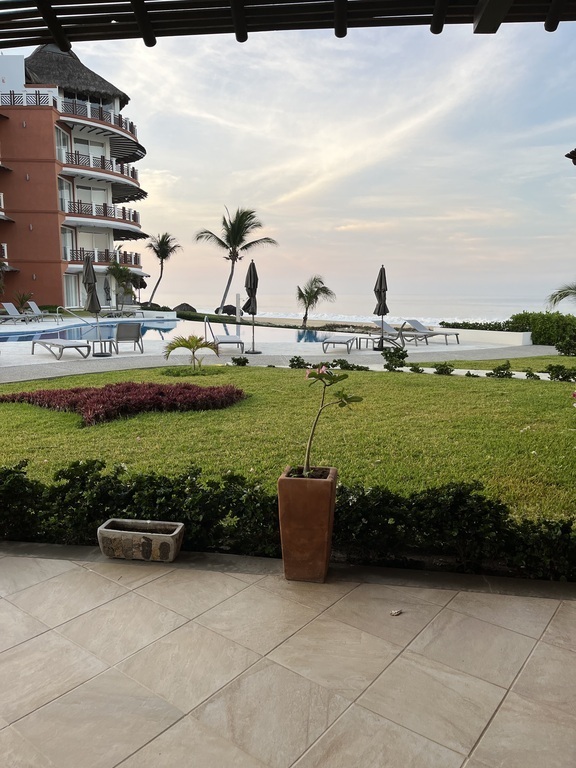 This is a resort with 8 condominium buildings and some Villas. We have a clubhouse with a restaurant, bar, workout room, library, Palapa for yoga and functions, Tennis courts, Pickleball courts, 3 swimming pools. All right on the ocean with miles of walkable ocean front and beautiful sunrises and sunsets. It's a warm welcoming community. The drive into Puerto Escondido is 25 minutes.