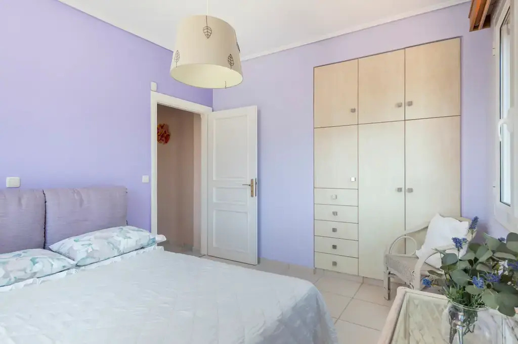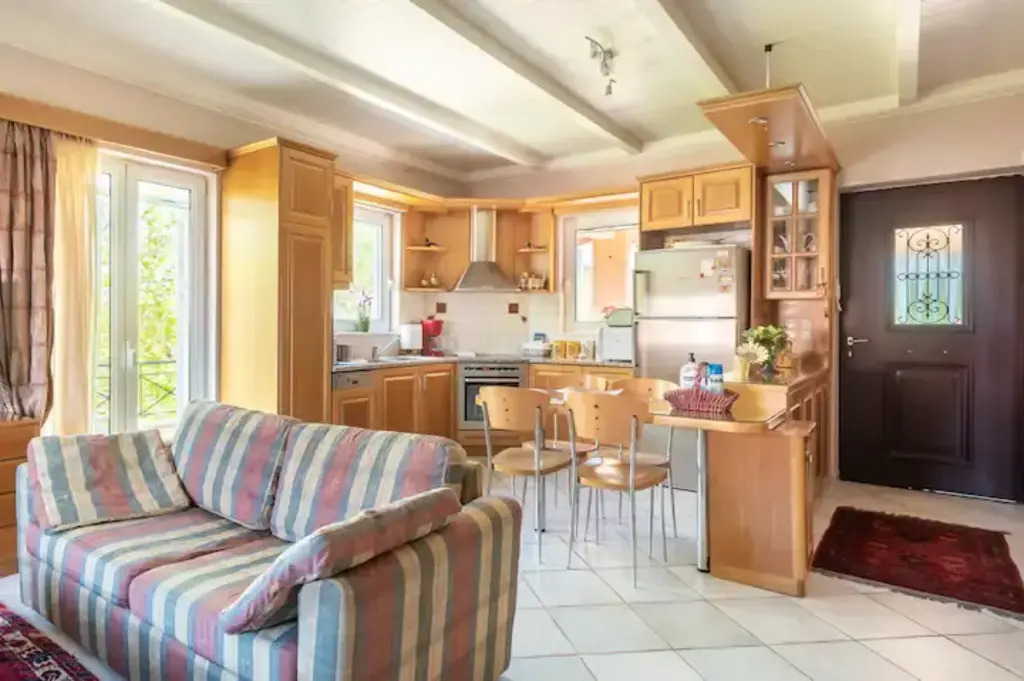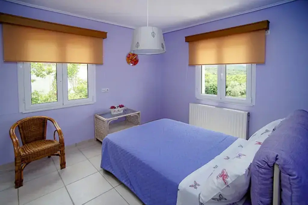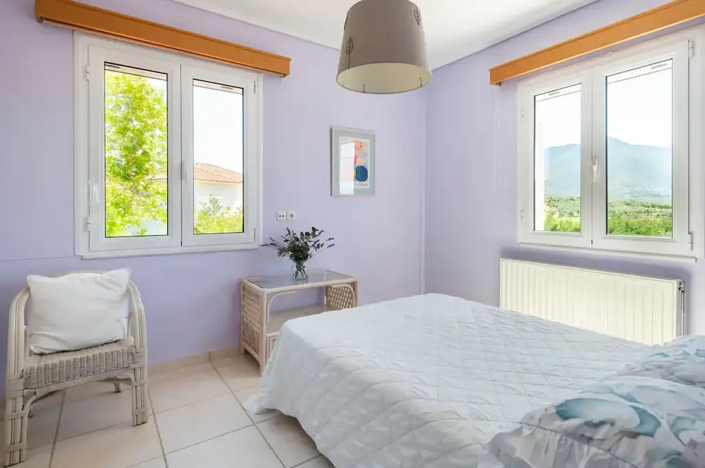 Our house is a comfortable cottage on mild hills in the south of Greece .It has 120m2 in a field. of 1500 m2. It has 3 bedrooms , 2 bathrooms , a dinning room , open plan kitchen fully equiped , living room with fire place and wifi.The two verandas give you view over the hills , the olive groves and the vineyards. The closest town is Kyparissia 6 kms from the village and offers plenty of choices in food , fun , shops and services( Hospital , banks , bus station , police and fire station).Beaches are also close.2-5 kms and plenty of them even further but easy to reach.Important archeological sites are about 60-70 kms away (Ancient Olympia first Olympis Temple of Apollo Saviour , ancient Messini) and mant others. Touristic sites about 50-60 kms( Pylos , Costa Navarino , Gialova , Methoni) and of course the capital of the district , Kalamata , a seaside city with all facilities plus an international airport.My husband and I are pensioners so we spend a lot of time in the country.He was head master in high-school in Athens (physics teacher) and I worked in a hospital as technologist in a microbiological laboratory.We have two grown up kids My daughter,28, after her studies in Logistics works in the international airport of Athens.My son,23,student in Museology faculty also works in the international airport.So we are free to travel and meet new people and visit other countries.