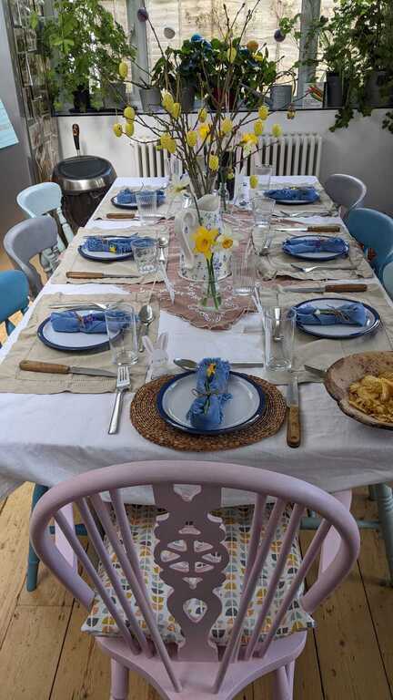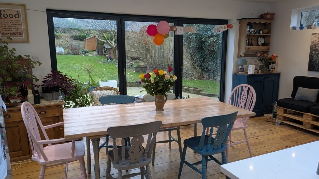 1930s semi detached family home with large garden in a quiet cul de sac. We have recently renovated in a quirky and individual style, using many upcycled materials.