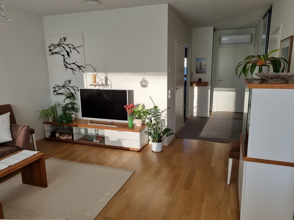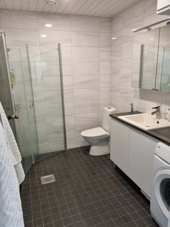 This is a terraced house with a garden and a nice patio. We have two bedrooms, open kitchen and livingroom, a toilet, a bathroom with toilet and sauna. We have one e-bike and one bike which can be used here.