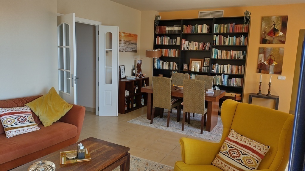Two bedroom/two bathroom, 2nd floor apartment with sitting room/dining room and separate kitchen with laundry room. Terrace with sea and village views. Situated on the edge of the Cerro Gordo national park. As well as the communal pool, there is a padel court and basketball court within the gardens to the apartment.