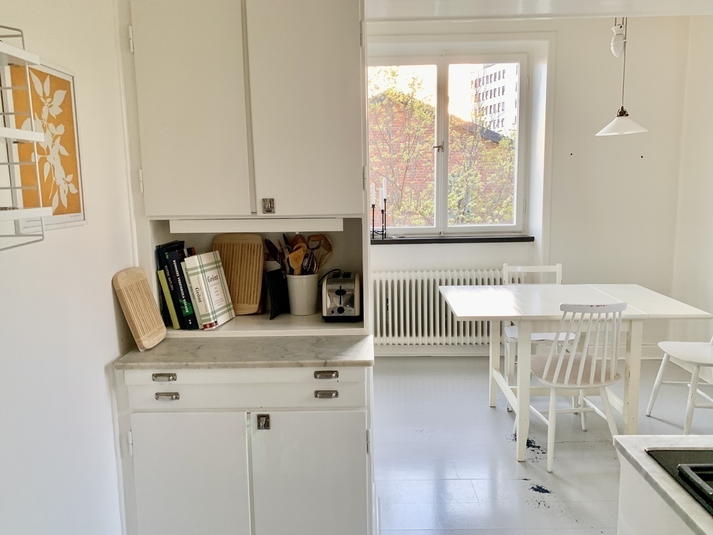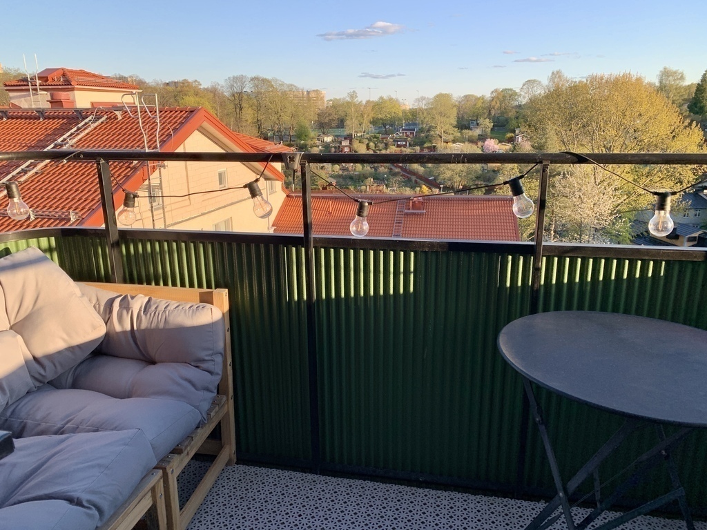 In one of Stockholms most trendy areas, but also on a really quiet street. Balcony with sun all day, close to parks, great bars and to the water where you can take a swim. Södermalm in Stockholm has a lot of bars, cafés, second hand stores etc. One bedroom with king size bed, but also possible to put up a comfortable mattress in the living room. I recently moved in, things on the walls and coffe table etc. will be in place for the summer! Very close to subway and busses.