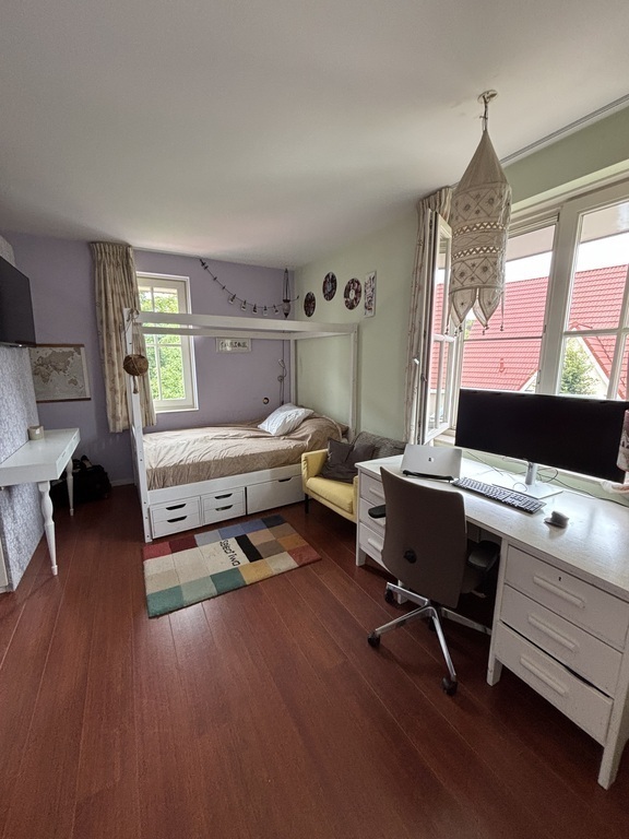 Ons gezin met drie dochters (20, 25, 26) woont hier al 20 jaar. We hebben het huis gebouwd met het oog op een ideale plek voor kinderen. Naast de ruime tuin biedt een groot speelveld voor het huis volop plek voor de kinderen om te sporten en spelen. Ons huis heeft veel plek om te koken, te ontspannen (apart tuinhuis met bioscoop), tafeltennis en buitenkeuken met BBQ en Pizzaoven. Maar als je dan toch wat werk moet doen zijn glasvezel internet en twee aparte werkkamers aanwezig. Auto(s) parkeren op eigen terrein. Auto ruilen is bespreekbaar.