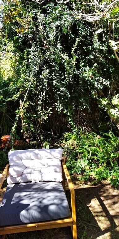 The backyard is an enclosed tropical paradise with a large temporary swimming pool with heater and filter. There are also pool toys, loungers, etc. There is a dining table with a pergola to enjoy a meal al fresco, and a seating area perfect for having tea or coffee in the fresh tropical morning! There are also two enormous Canary Island Palm Trees in the garden, along with multiple exotic fruit trees including figs, Mexican sapote, and pear. The garden is also incredibly private, with a wild jungle aspect that is both exotic and cosy, perfect for couples or families.