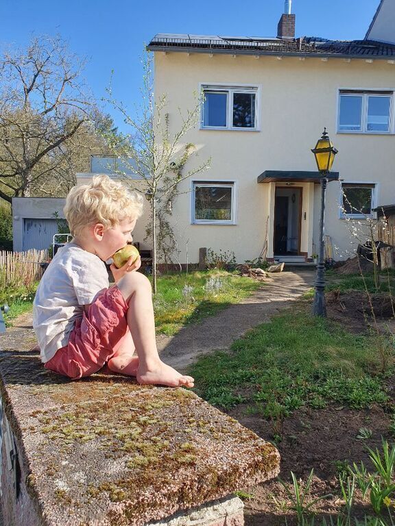 Our house is located in a quiet residential area on the outskirts of Darmstadt. The large garden leads directly into the forest at the rear. The city center can be reached by bicycle in 10 minutes or by tram in 15 minutes. There is a direct walking connection to Frankfurt (25 minutes to Frankfurt Central Station). There are plenty of play opportunities for children in the garden and the surrounding area. It is the ideal starting point for exploring the Odenwald forest by hiking, cycling, or mountain biking, and for visiting the surrounding towns and cities (by train or car).