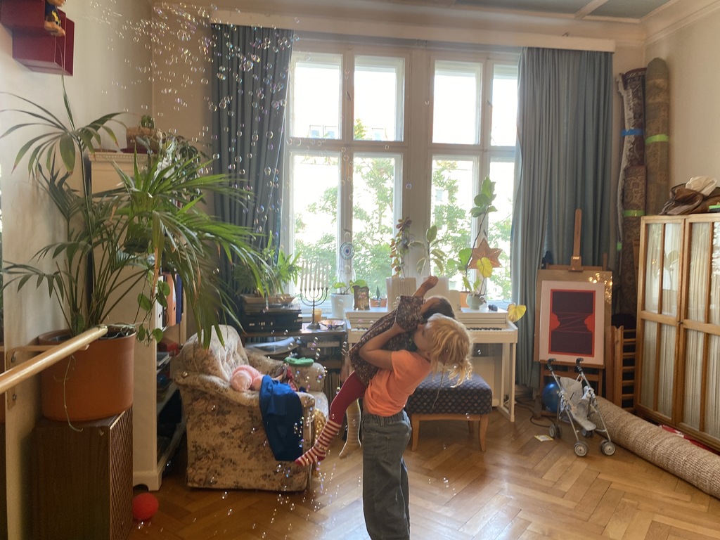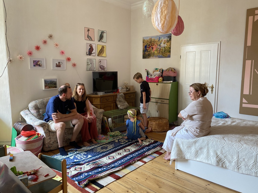 We offer a big flat at the 4th floor of a beautiful rare building. The area is really friendly, has a lot of green areas or playgrounds. A lake to swim in summer is 30 minutes by bike.