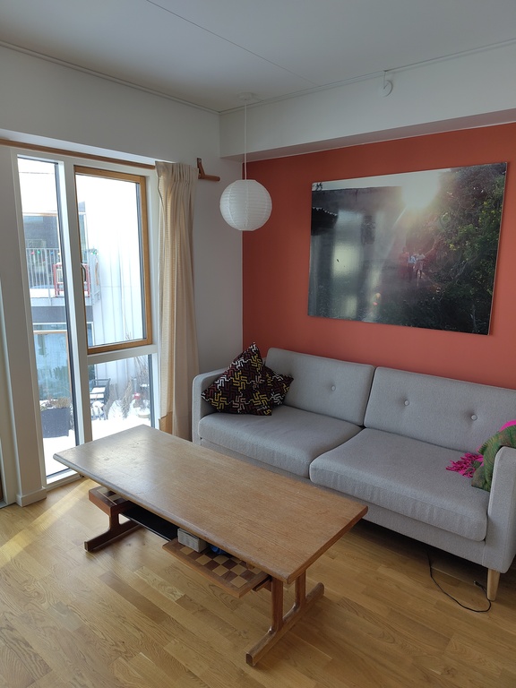 We live in a two storey flat, being a part of a community living. We have our own flat with everything, but we share a big living room with all kinds of childrens toy, workout/kettlebells, barbeque and out door areal.